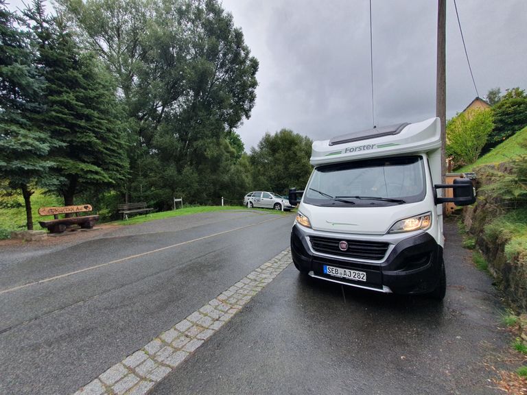 A barbecue and seating area can be used, as well as a bathroom. The Lichtenhain waterfall and the Kirnitzsch valley are about 20 minutes' walk away, so the hiking area is right on the doorstep. The small romantic village stream runs past the seating area, which can only be reached via a small staircase. If you need electricity, this is also possible and dogs are welcome, but should be compatible with everything, as we also have 2 dogs and cats and rent out vacation apartments. You can't sit directly in front of your camper with awning etc., but you can sit directly next to the camper under a carport and use our outdoor area.