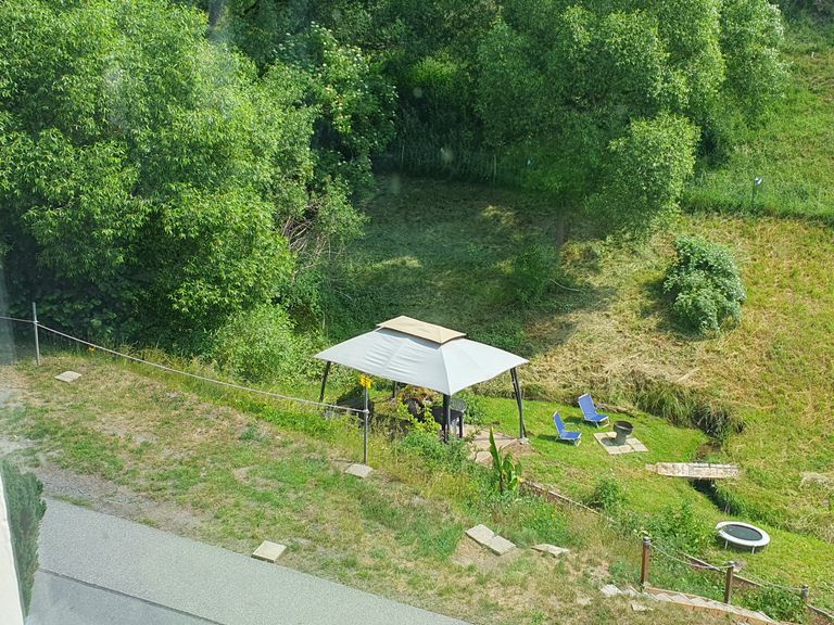 The pitch for 1 camper, car with roof tent is located on the driveway to the house on the little-used road of the landlord's house and yet surrounded by forest and hillside meadows with sheep. Tents approx. 3x3m can be pitched down by the stream under the pavilion.