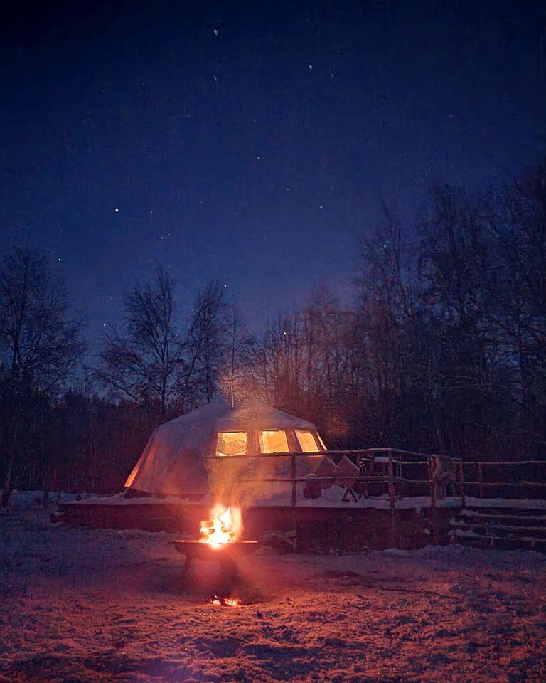 Camping among huskies, deer, and birds of prey in the heart of the nature park