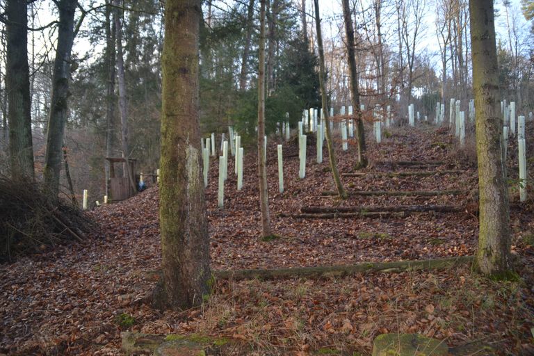 Away from the small village of Steinbach, this site is located in a sparse forest in the middle of nature. You can park your car on the meadow in front of the forest. A small path leads you from the quiet forest path to the ground-level pitch measuring approx. 2x2 m. You can pitch your tent under a "pergola" made of natural wood. If you are quiet, you can listen to the babbling of the Schönertsbach stream flowing past. In summer, it offers you a pleasant refreshment and after getting up, it awakens all your spirits.
