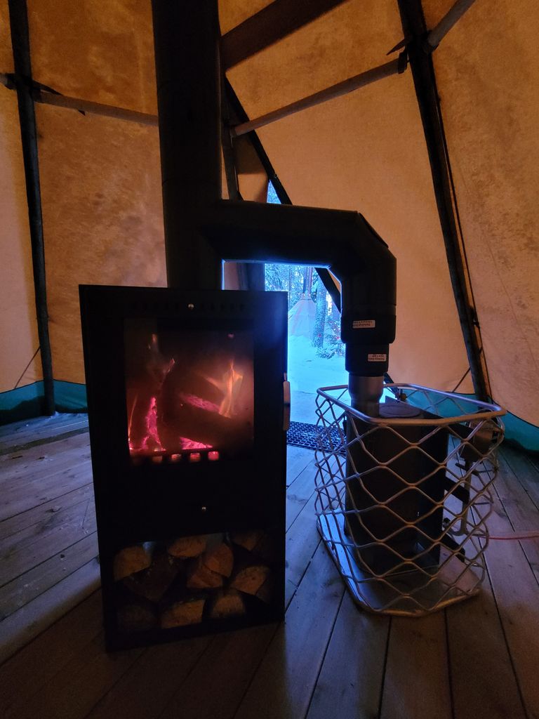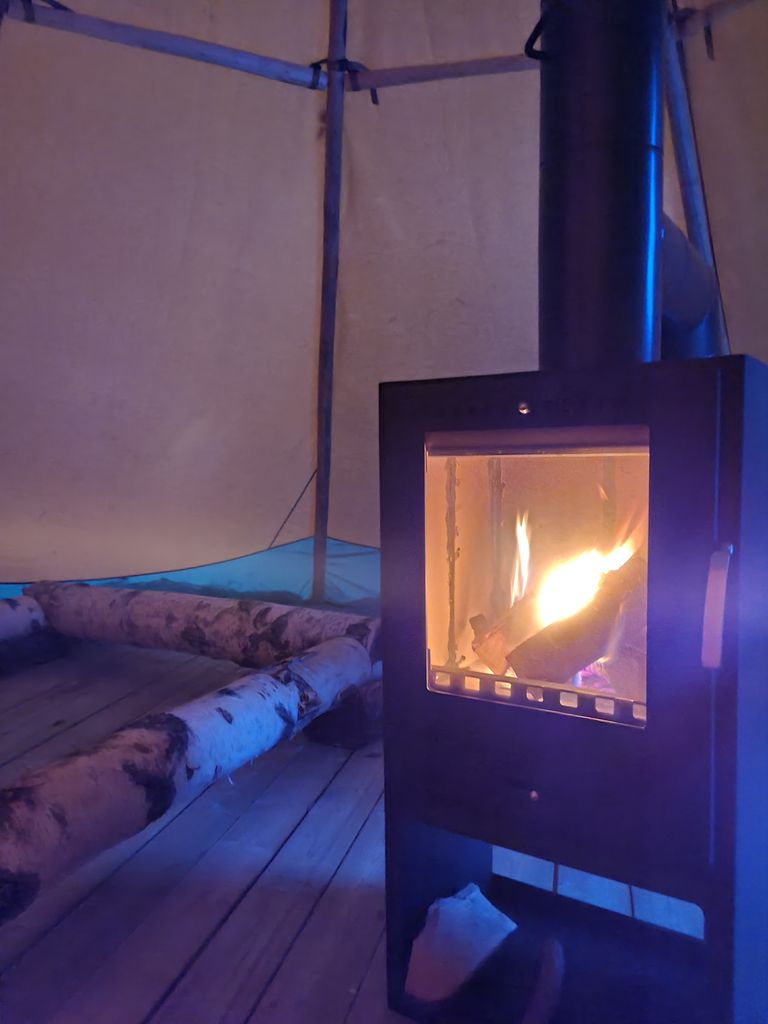Both are located at the back of our property, in the middle of our own small wooded area. A private, natural fireplace between the two tents makes your nature adventure perfect. Enjoy the wonderfully fresh air, the crackling of the fire, cozy hours under a clear starry sky, or the Nordic beauty in all its diversity.