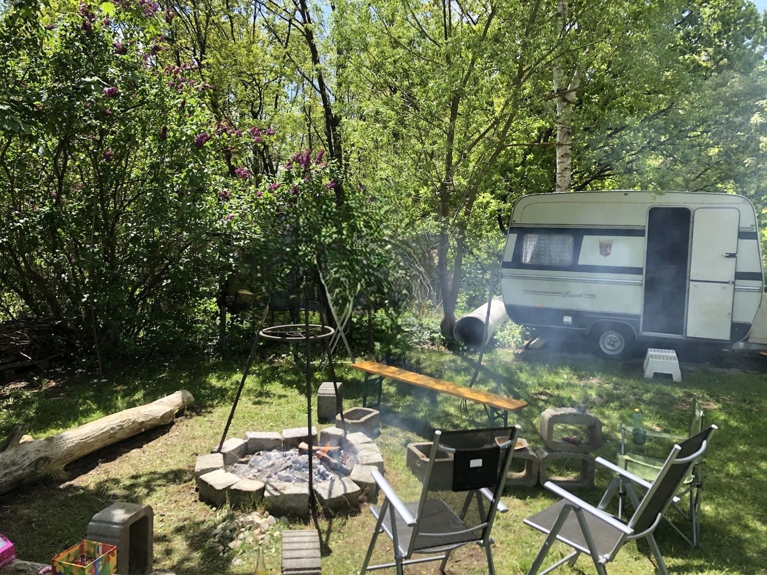Our fire pit, including a tripod with grill rack, is at your disposal.