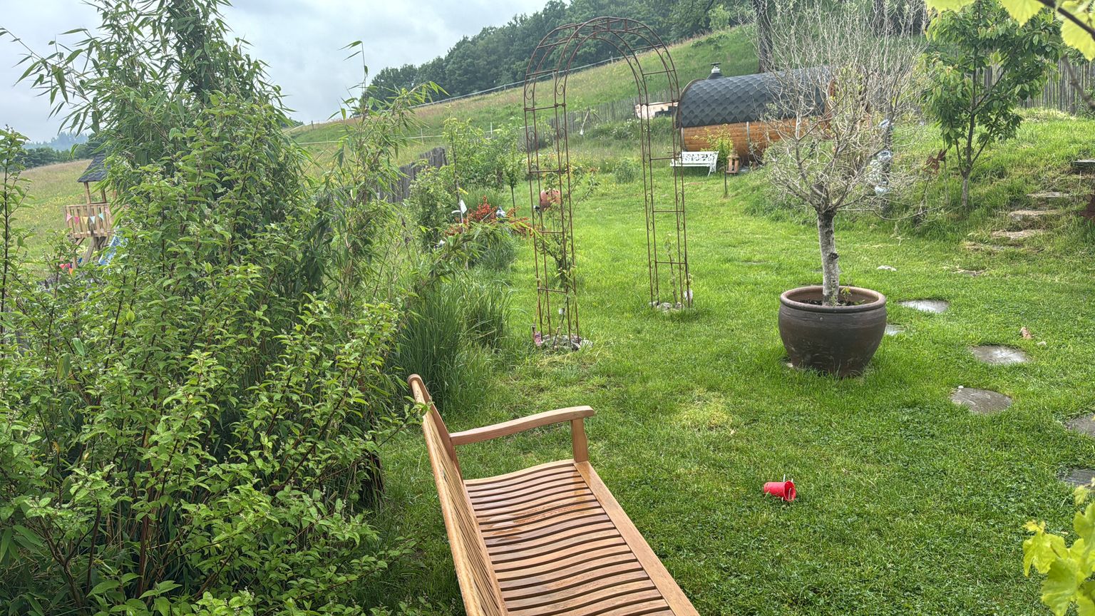 The barrel sauna with wood-burning stove is available for shared use