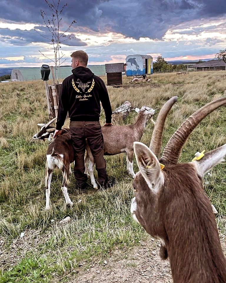 Nosotros (Kathrin y Alex) le invitamos a unas vacaciones de placer en la granja de cabras. La granja está situada en el pequeño pueblo de Lettweiler en el norte del Palatinado. Disfrute de una vista impresionante en un entorno tranquilo con nuestras cabras, gallinas, patos y gansos.