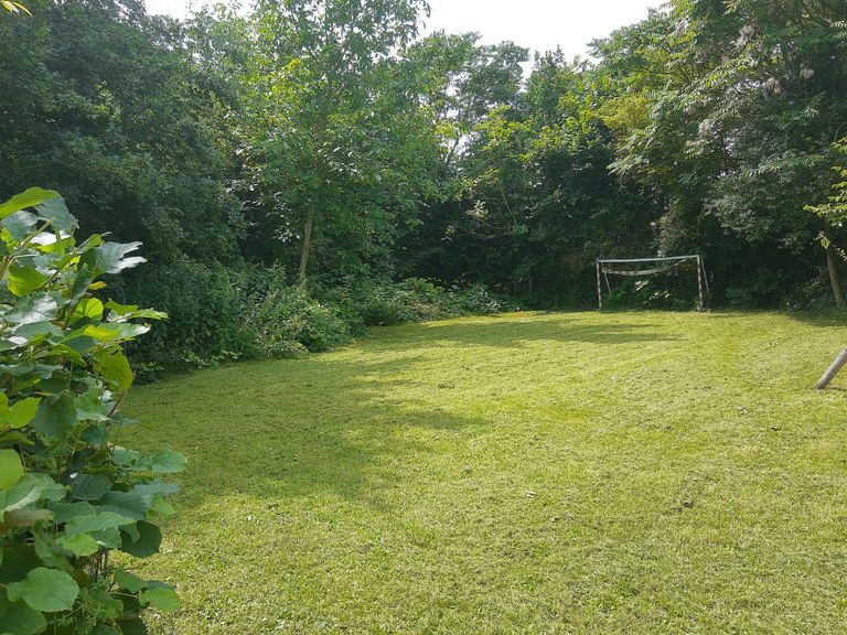 Un pequeño jardín precioso y bien cuidado, ideal para acampar.