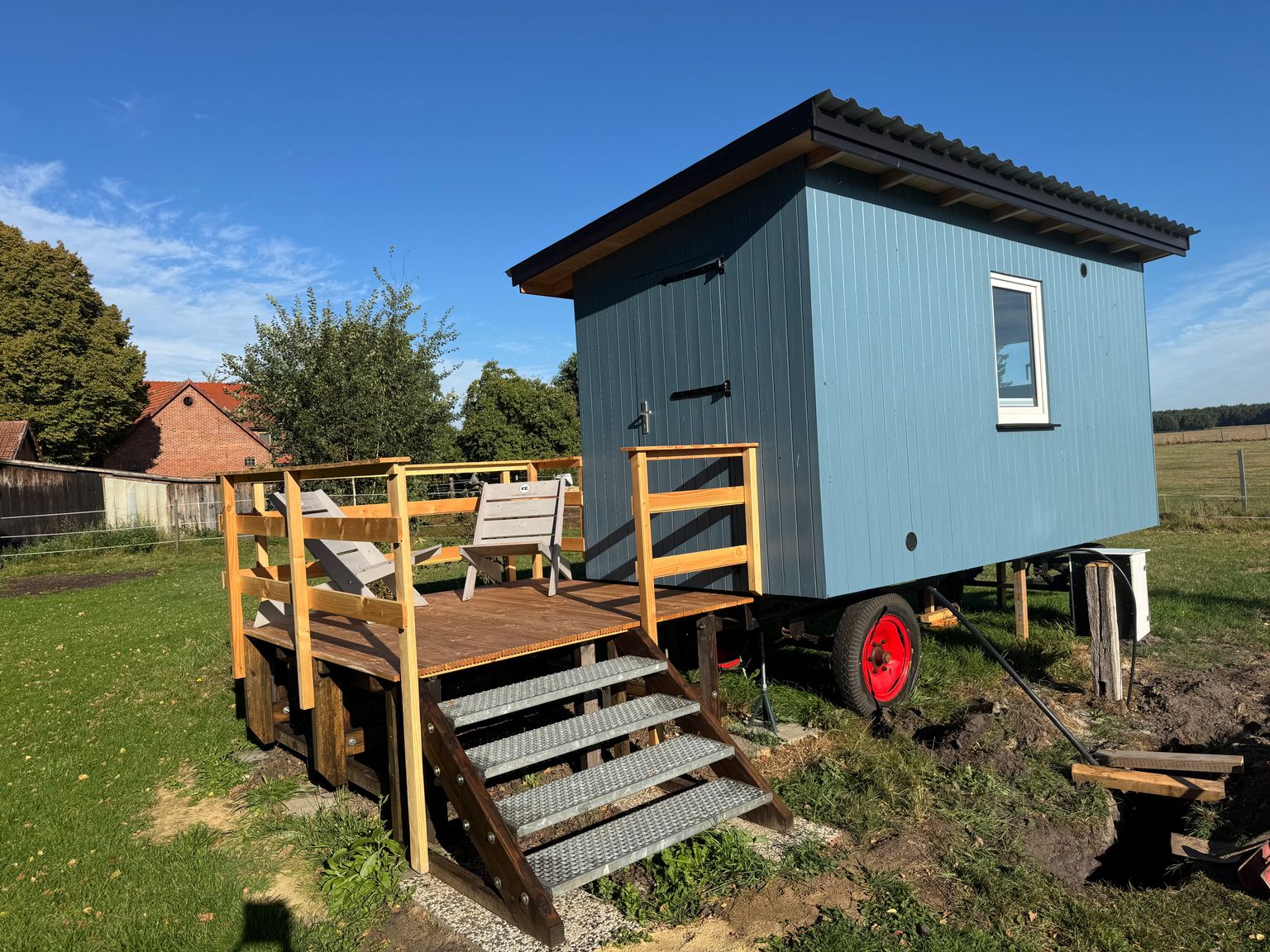 Nuestra granja se encuentra a 25 km al sur de Bremen, en un paisaje de prados y campos de cultivo. Vivimos aquí con nuestros 3 hijos, caballos, algunas gallinas, gallos, un gato y un gato.