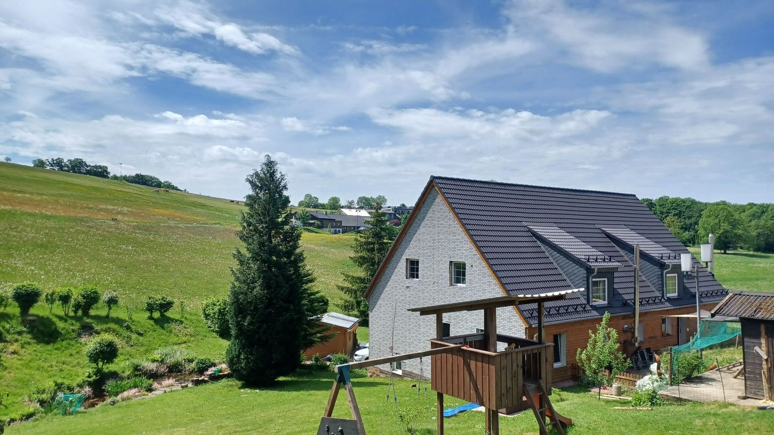 El lago Sorpesee está a unos 10 km y el lago Biggesee, a 30 km. Os ofrecemos gratis huevos frescos de gallinas felices y agua de manantial. Los niños pueden corretear y jugar, ya que aquí no hay tráfico. Hay un restaurante con terraza a poca distancia a pie. Nosotros (una gran familia multigeneracional) os esperamos con los brazos abiertos.