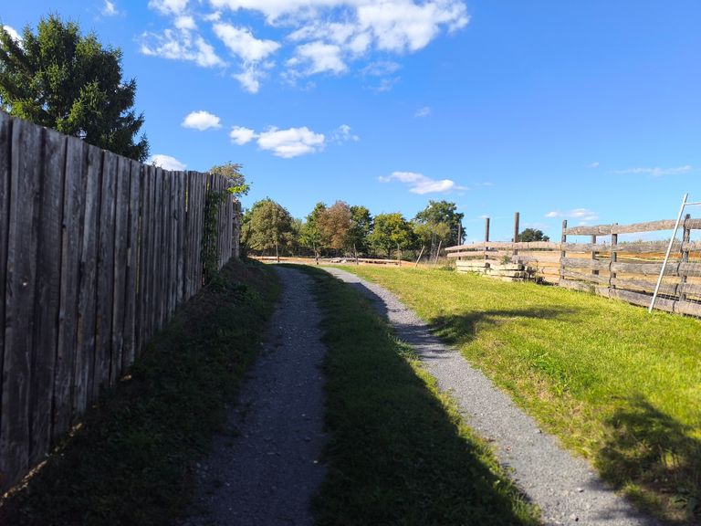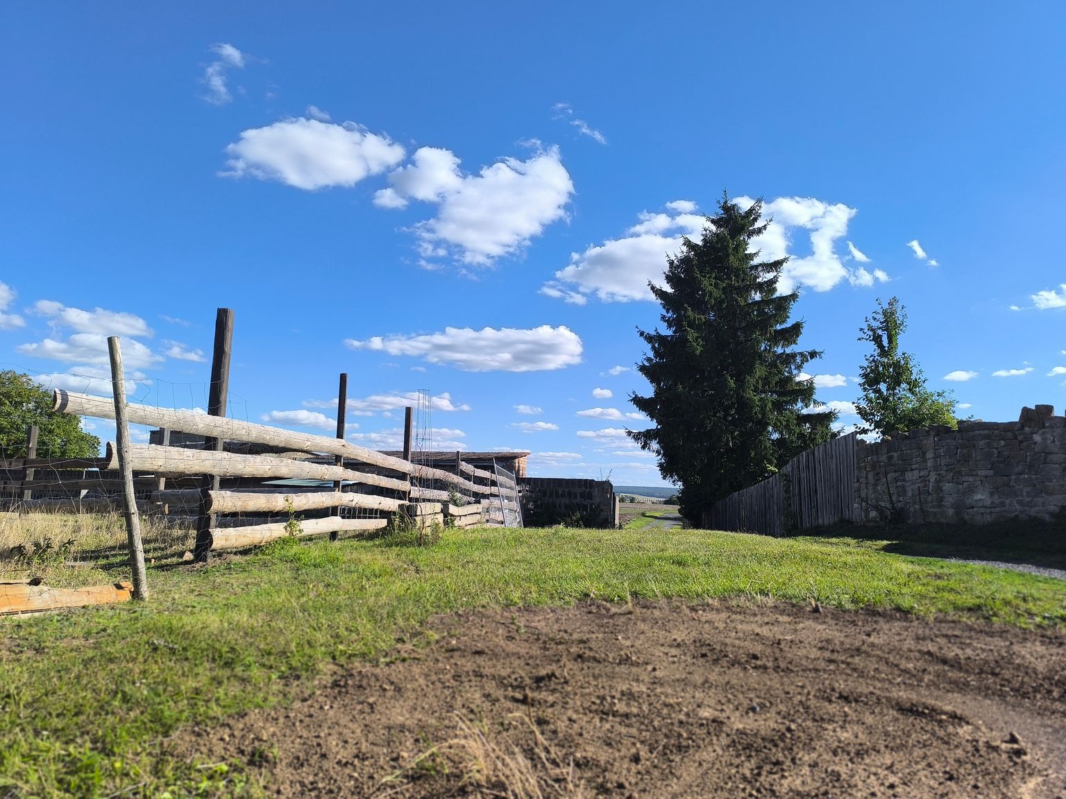 L'emplacement se trouve en bordure d'un chemin de terre. Le terrain offre une surface non entièrement clôturée. Le chemin n'est qu'empierré. Vous dormirez dans une ancienne ferme au milieu de la nature. La plupart du temps, il n'y a pas de vent, c'est ensoleillé et très calme. Notre vue s'étend jusqu'au Kyffhäuser. Le soir, on peut profiter du coucher de soleil.