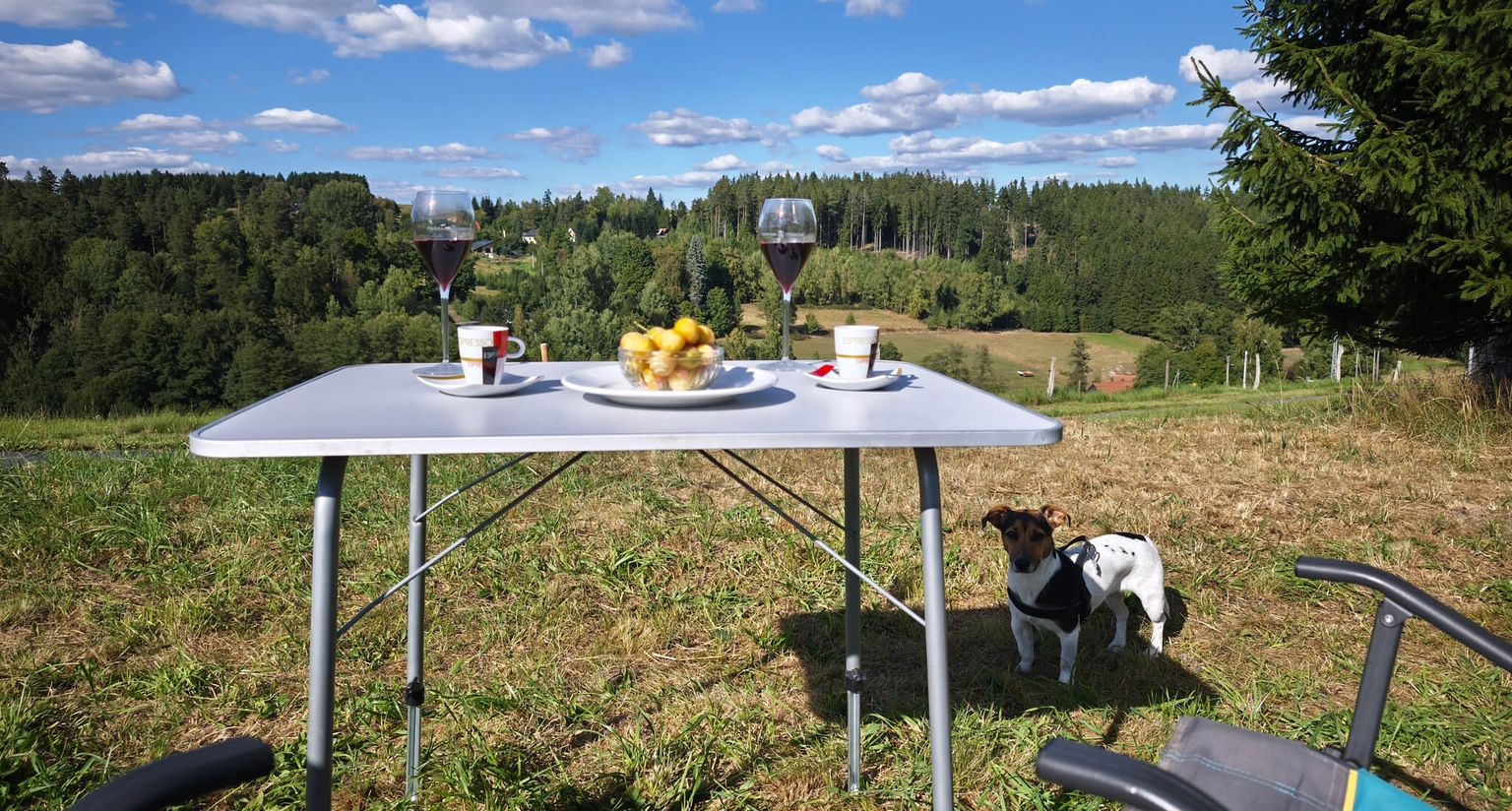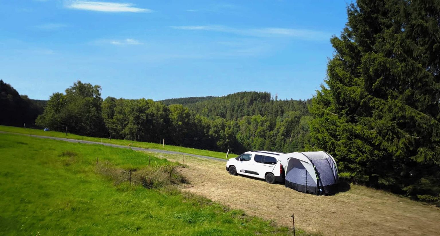 Un emplacement isolé entre de douces prairies et des forêts silencieuses, avec une large vue panoramique. Arriver, respirer et laisser son âme s'évader.