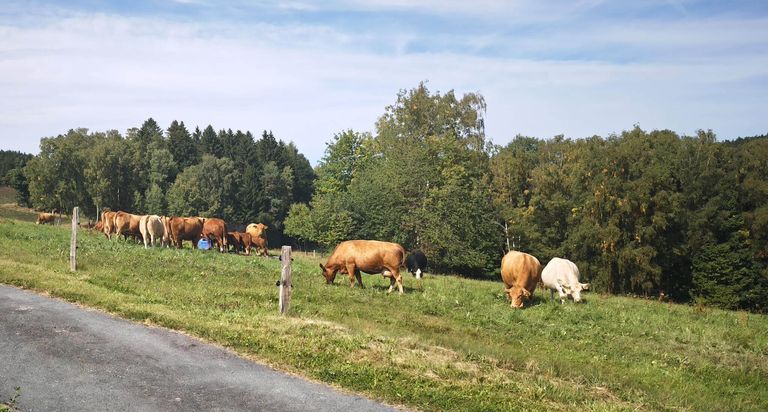 Le matin, nous savourons souvent notre premier café avec vue sur la vallée, où le brouillard s'accumule parfois. Avec un peu de chance, un chevreuil se montre dans l'herbe ou un faucon hobereau tourne en rond. Le soir, les oiseaux se taisent et, dans le silence, le renard appelle.