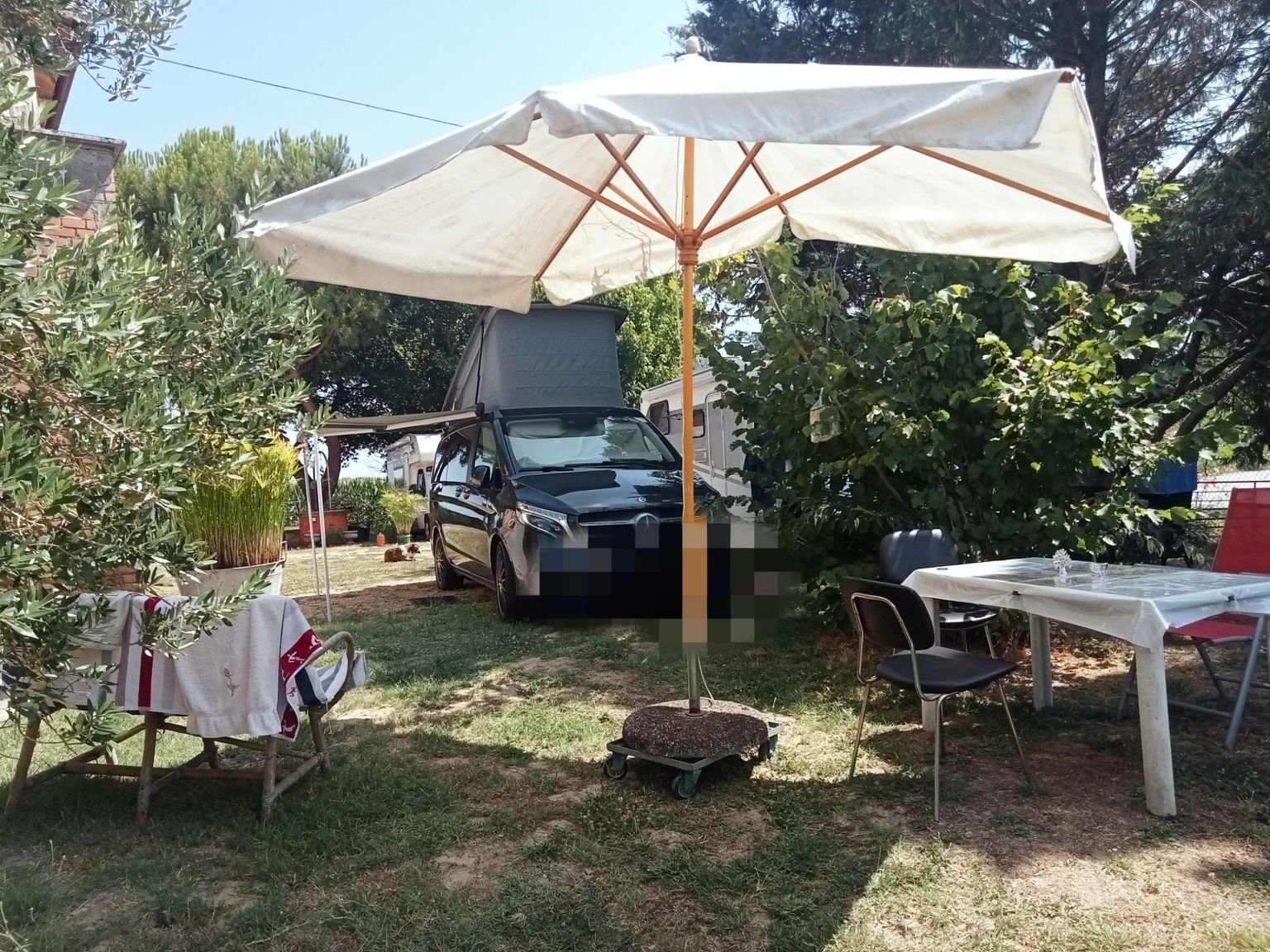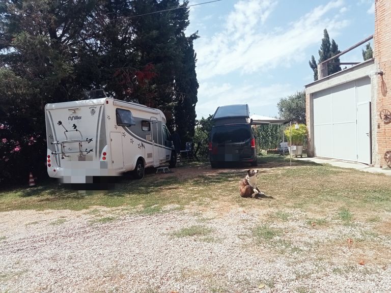 Place de parking à l'intérieur de ma cour, privée et clôturée. De la mi-mars à la mi-octobre, à l'intérieur d'un garage, une PETITE toilette avec douche chaude. Douche froide à l'extérieur. Toujours disponible, toute l'année, l'électricité et l'eau potable. Présence de chats et de chiens dans la cour. A 500 m de l'arrêt de bus pour Bologne ou Ferrare, restaurant-pizzeria et pharmacie. Epicerie et bar à 1 km.