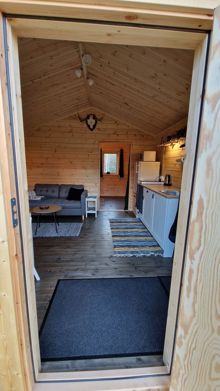 La cabane de 24 m² allie confort moderne et convivialité naturelle. Dans le salon (environ 15 m²), tu trouveras une petite cuisine bien équipée avec des plaques à induction, un réfrigérateur, un four à micro-ondes, une bouilloire électrique et un grille-pain. Une table à manger et un canapé invitent à la détente. Dans la chambre à coucher (env. 9 m²), un lit double confortable (140 × 200 cm) garantit des nuits reposantes après une journée en plein air.