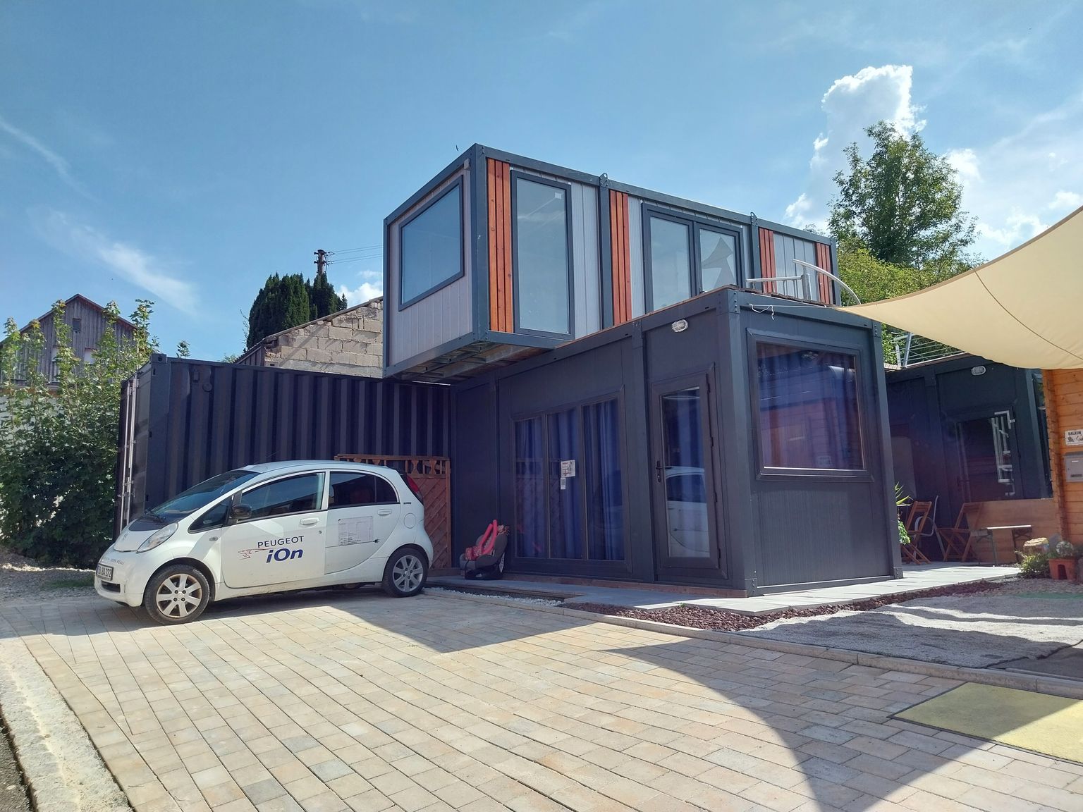 Chez moi, vous trouverez des tiny houses simplement équipées, construites selon une conception moderne de type conteneur. Les hébergements disposent de leurs propres installations sanitaires. Il y a également une cuisine commune et la possibilité de camper chez moi.
