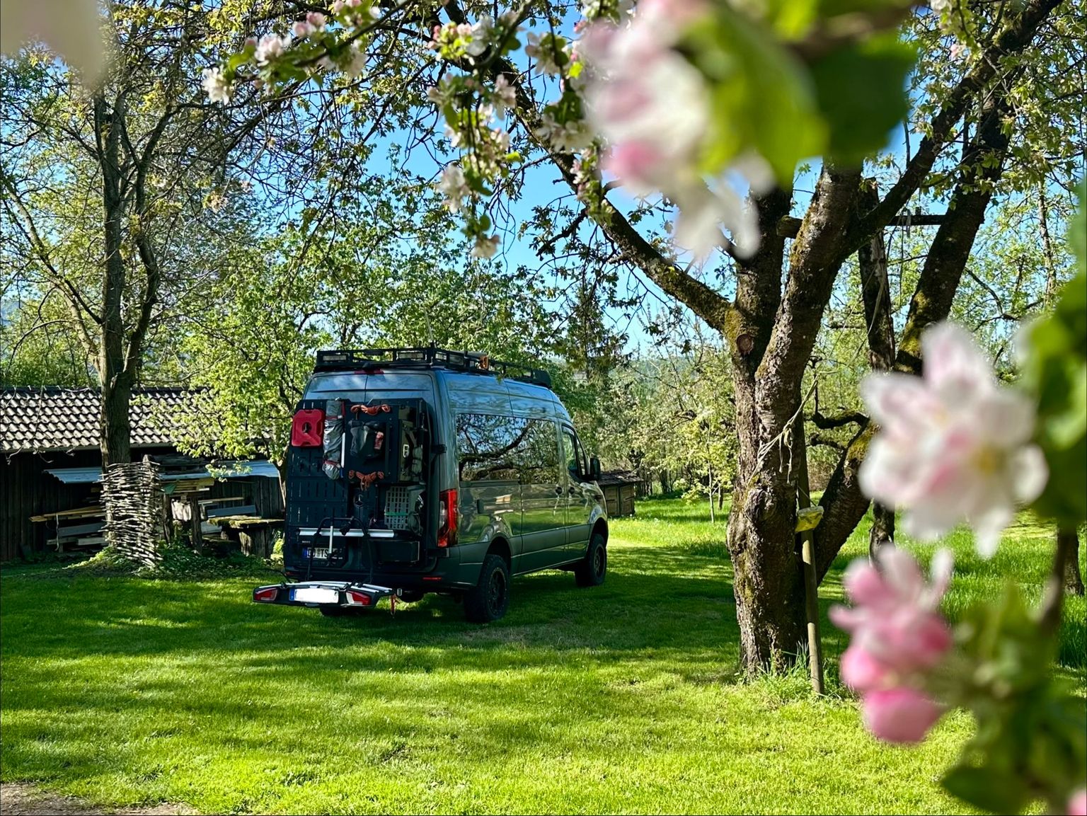 Imagine que tu te réveilles, que tu ouvres la toile de ta tente ou la porte de ton camping-car et que ton regard se pose immédiatement sur la silhouette majestueuse du Jura souabe. Ce rêve devient réalité sur notre terrain de 4 000 m², idyllique et isolé. Dans un cadre totalement isolé, nous t'offrons non seulement un emplacement, mais aussi un petit coin de chez toi pour un temps.