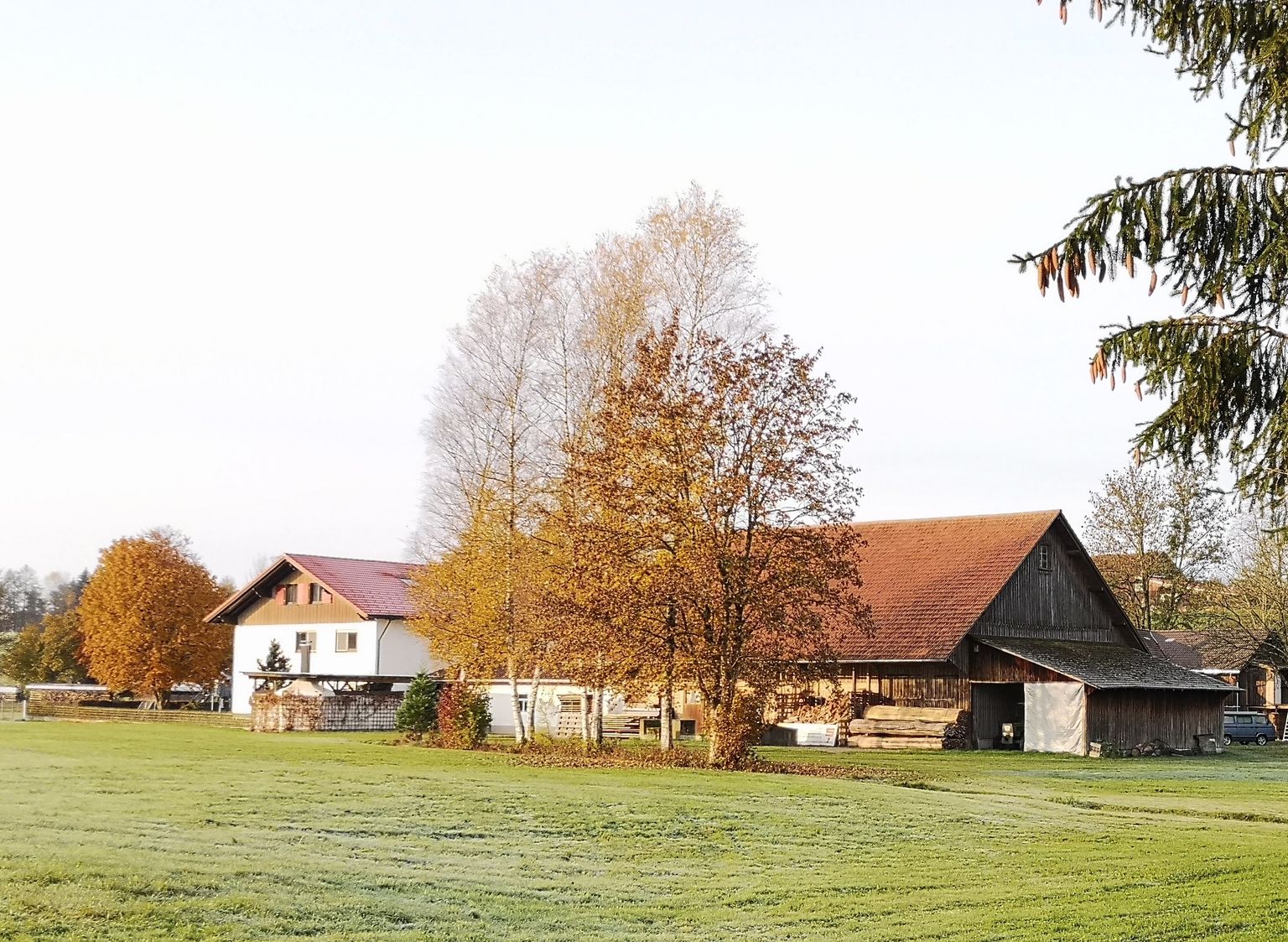 die Birken spenden euch im Hochsommer bis Nachmittag Schatten und ab Abend habt ihr Schatten durch das Stallgebäude. es wird ein paar Stunden mit direkter Sonne geben. Irgendwoher muss der gute Teint ja kommen ;)
