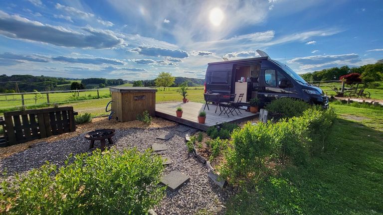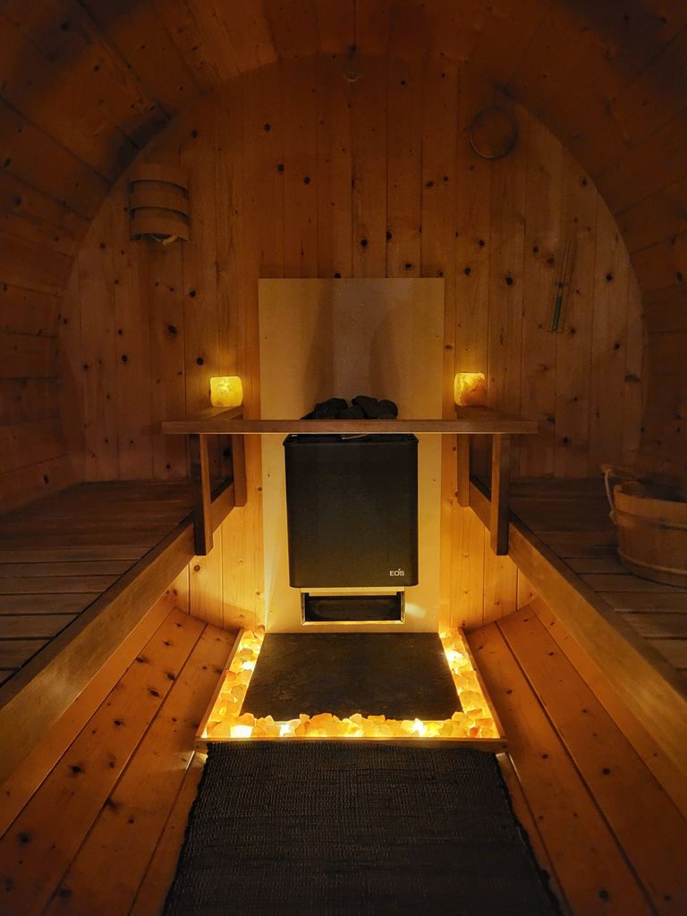 Una piazzola con ambizioni da glamping. Tra menta, salvia, rosmarino e timo, l'ampia terrazza solarium coccola gli ospiti, soprattutto nelle giornate più calde, e offre anche la possibilità di rinfrescarsi nella botte d'acqua adiacente. Può essere utilizzata anche come vasca idromassaggio. La botte viene riscaldata a 34-38° con un riscaldatore elettrico.