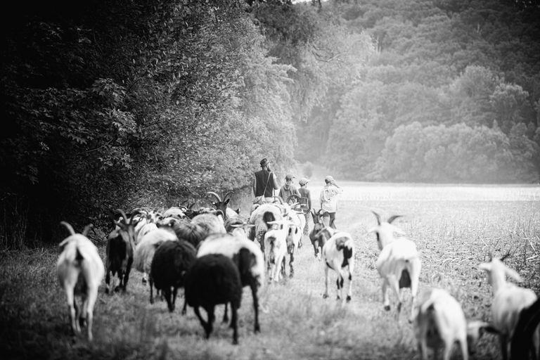 Abbiamo un gregge di capre, pecore, galline, conigli e un piccolo campo.