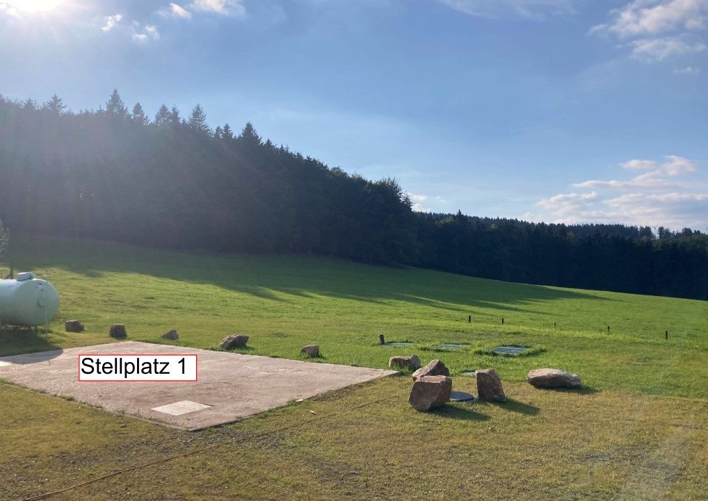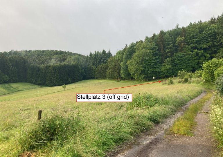 2 piazzole presso l'agriturismo con vista sul prato vicino al bosco, 1 piazzola ai margini del bosco