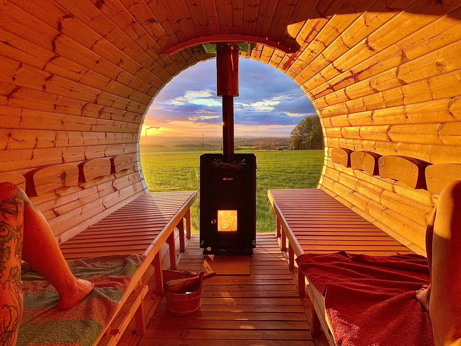 Una breve vacanza con vista su Chemnitz dal punto più alto di Chemnitz. In mezzo alla natura, circondati stagionalmente dalle pecore Welsh Blacknose che vivono nelle vicinanze, potrete rilassarvi nella sauna. Seduti nella sauna, potrete godere di una fantastica vista sulla Esse illuminata e guardare Chemnitz attraverso il vetro panoramico. A 100 metri di distanza, protetta dalla vista, si trova una tenda del Sahara in cui è possibile trascorrere la notte. Siete completamente autosufficienti, il che ha solo uno o due svantaggi in termini di comfort. Fanno parte dell'area anche un grazioso bagno di prugne con fascino e una rustica zona doccia all'aperto con barile d'acqua.
