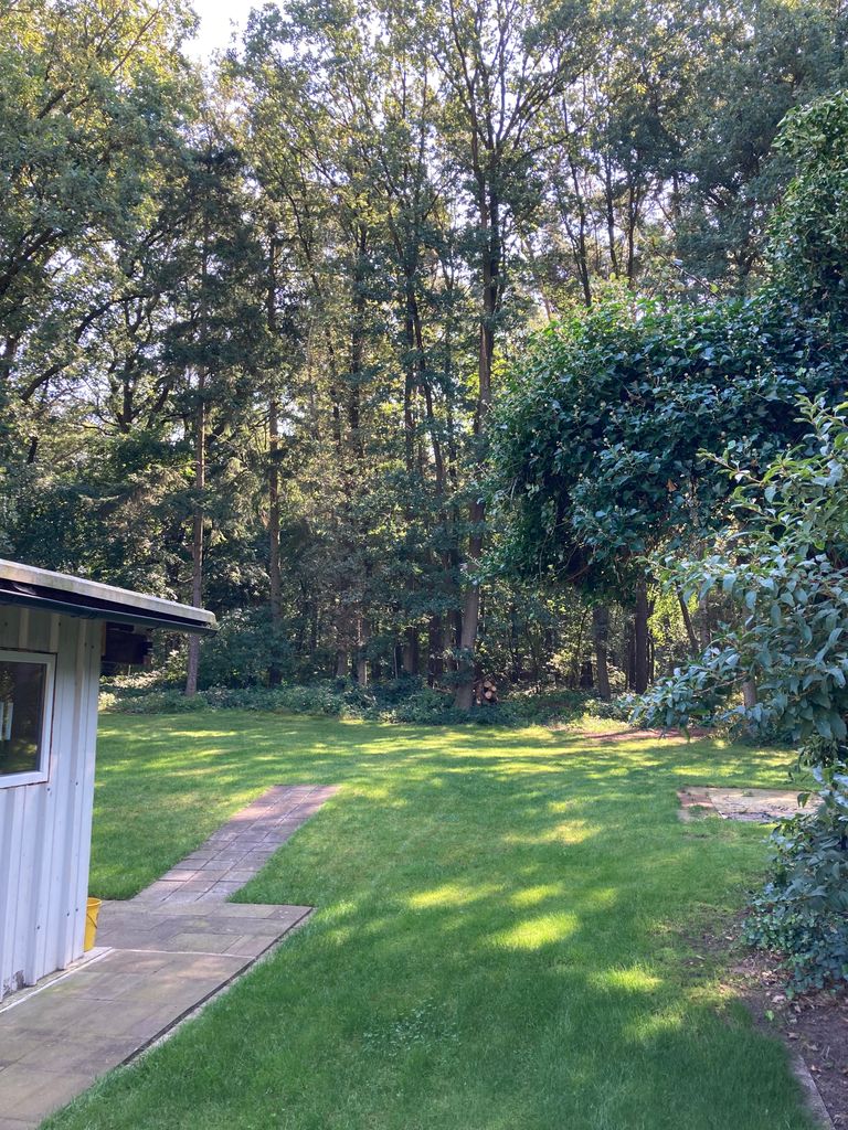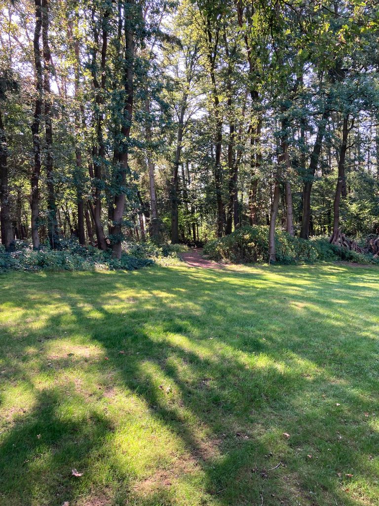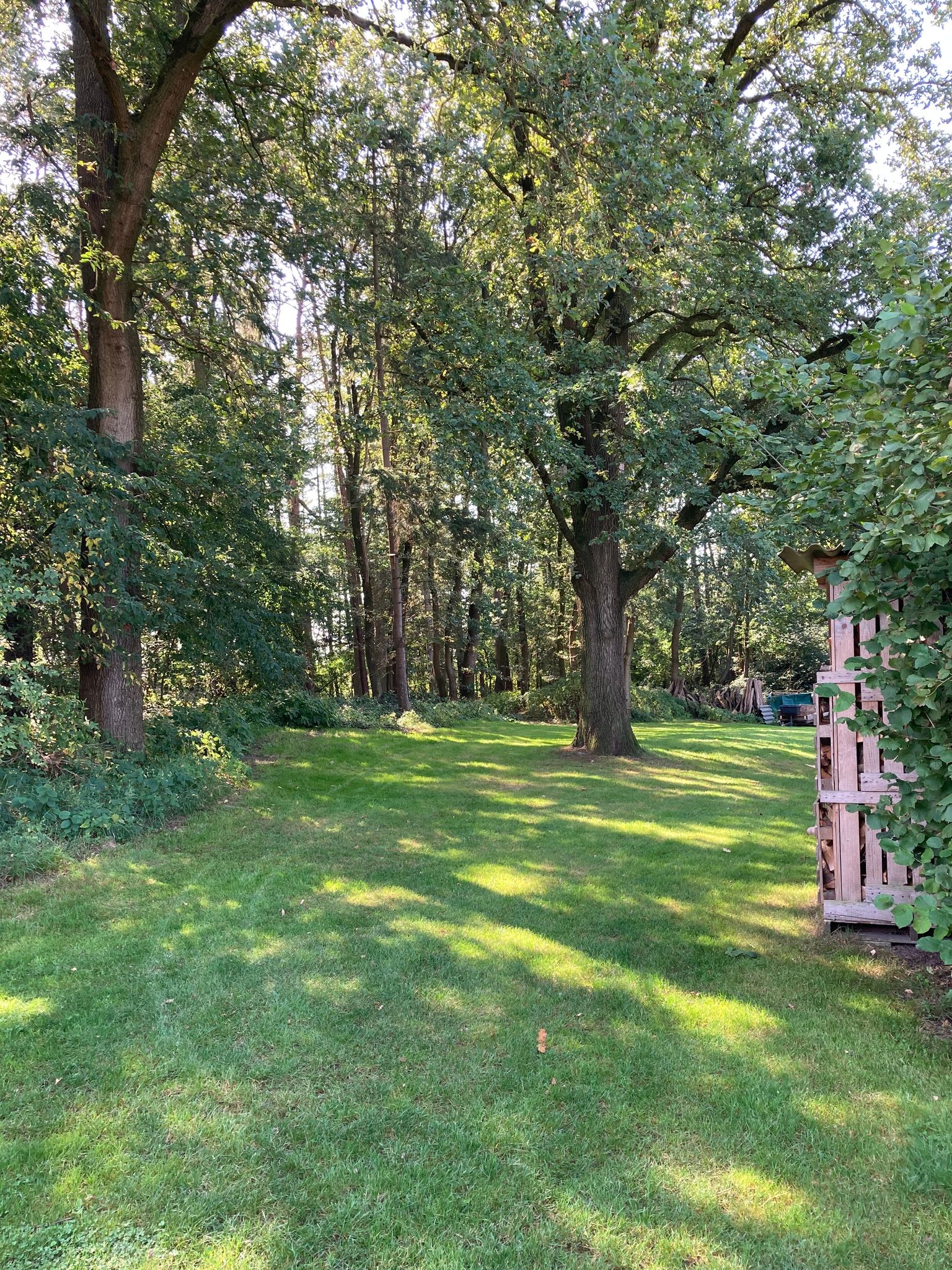 Prato in parte ombreggiato dagli alberi.