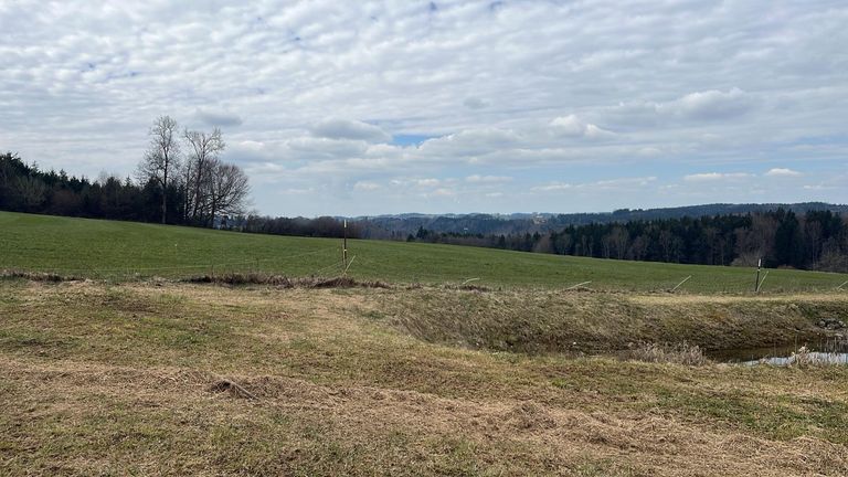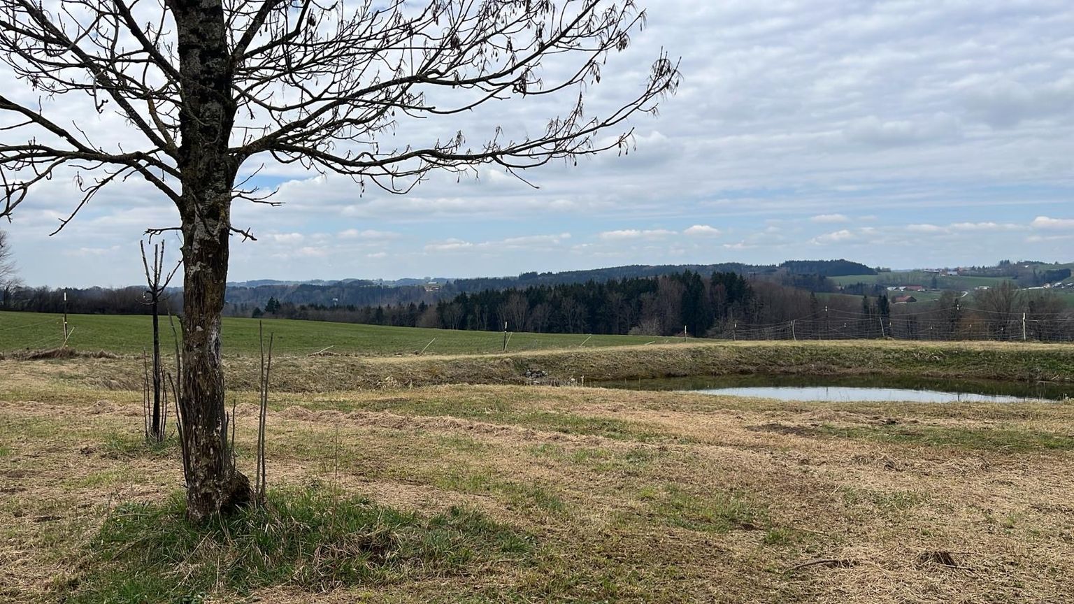 Piazzola privata in una fattoria biologica, accanto alla scuderia e al pascolo su un prato con un piccolo laghetto.