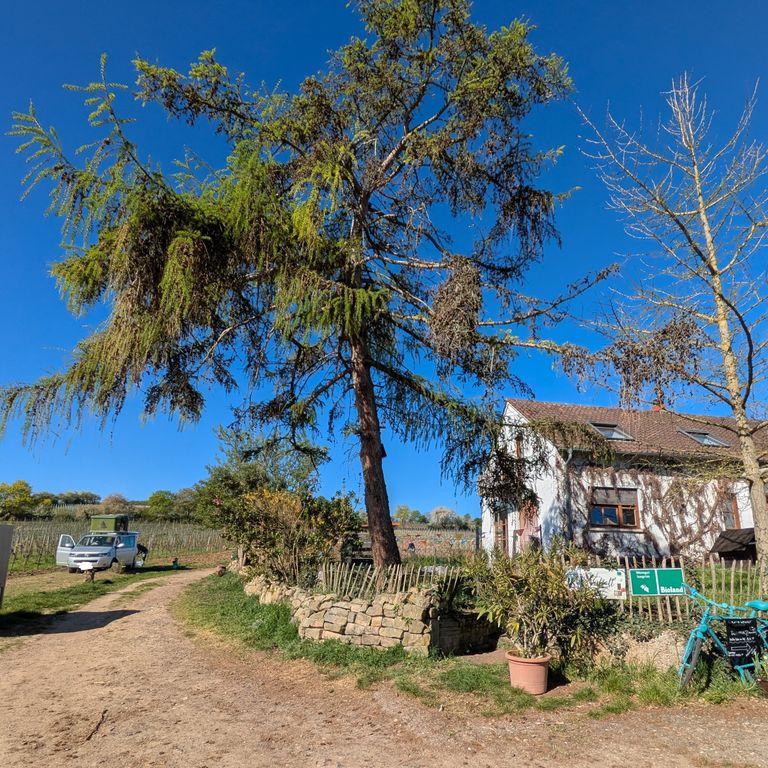 La nostra azienda vinicola certificata Bioland è una fattoria isolata situata ai piedi dell'Herrenberg, sotto la villa romana, immersa in un mare di vigneti. Da noi regna la tranquillità, a meno che non passi il trattore, non canti il gallo o non ridano i bambini.
