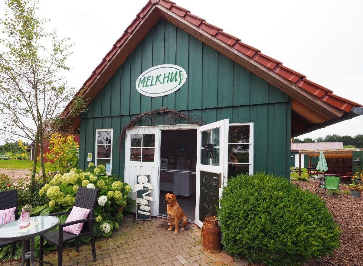 Wir betreiben sowohl einen kleinen Hofladen als auch ein Melkhus, wo man alles rund um Milchprodukte erleben kann: Eis, Quarkspeisen, Milchshakes, aber auch Kaffee und Kuchen.