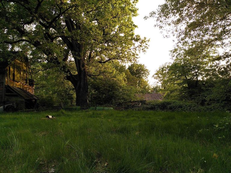 Auf dem Hof, für WoMos steht eine riesige Eiche, hinten ist es lauschig :)