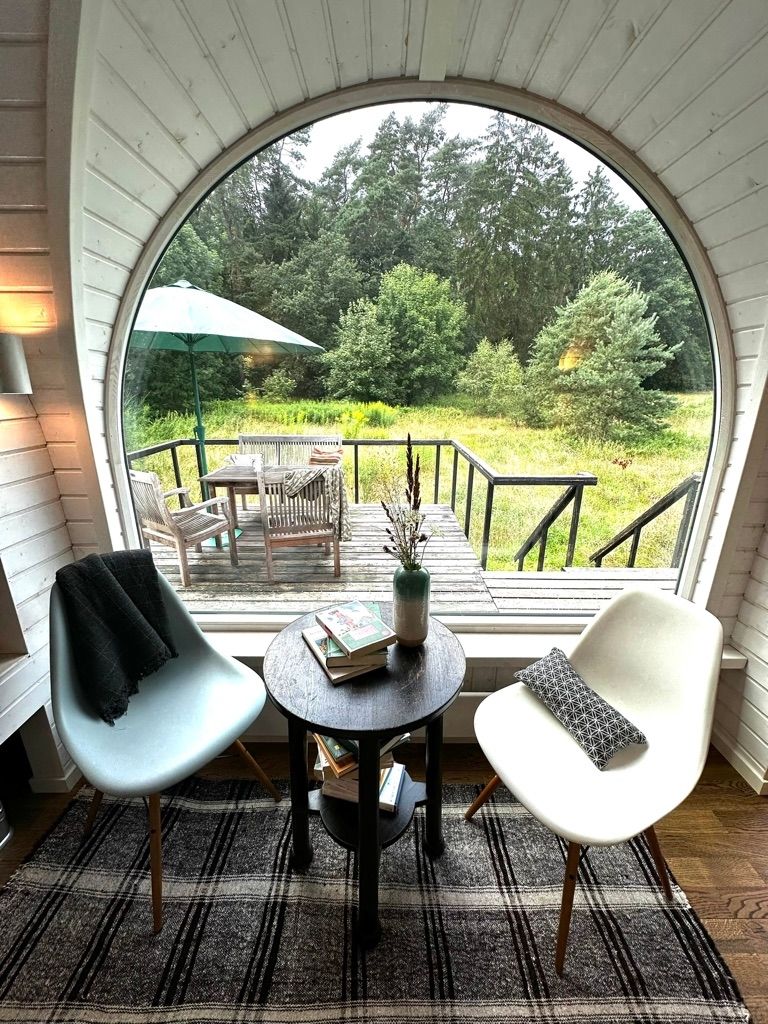 Das gemütlich eingerichtete Iglucraft von 18qm steht erhöht auf einem Fahrgestell auf einer Lichtung direkt am Waldrand, ihr seid hier ganz für euch allein, aber in Rufweite zum Haupthaus! Ihr guckt auf eine Wiese, die sich nach und nach zu einem Biotop entwickelt.