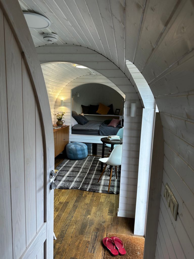 Das gemütlich eingerichtete Iglucraft von 18qm steht erhöht auf einem Fahrgestell auf einer Lichtung direkt am Waldrand, ihr seid hier ganz für euch allein, aber in Rufweite zum Haupthaus! Ihr guckt auf eine Wiese, die sich nach und nach zu einem Biotop entwickelt. Es gibt nur ein Nachbargrundstück, und da müsste man schon sehr laut rufen, um gehört zu werden.