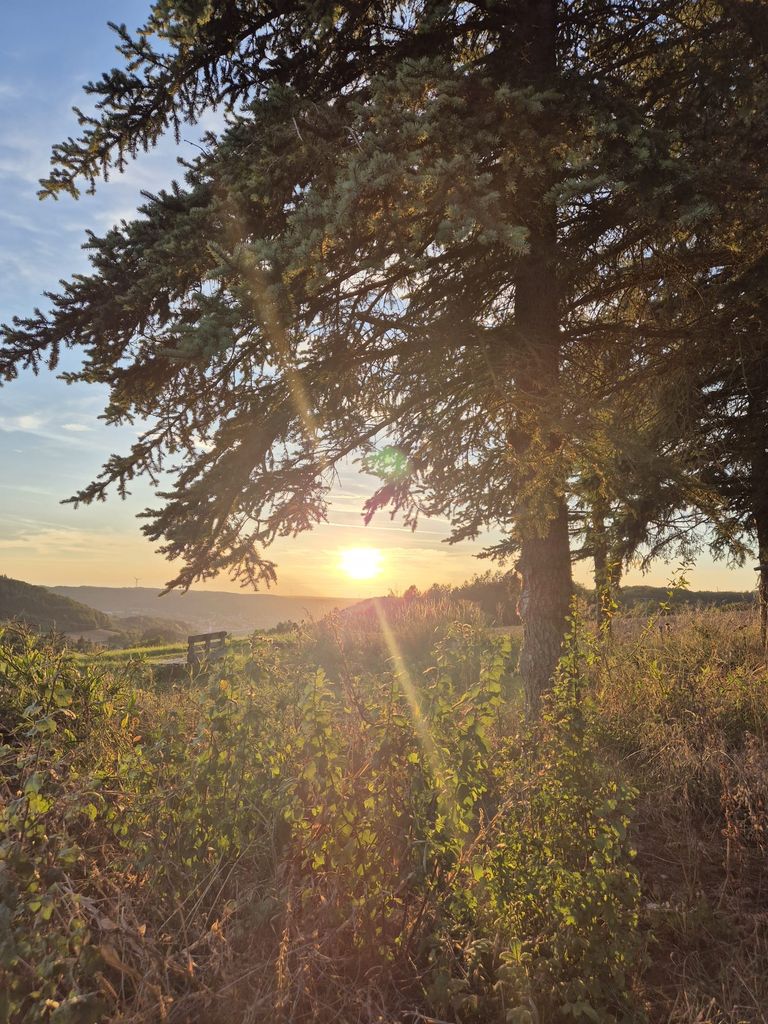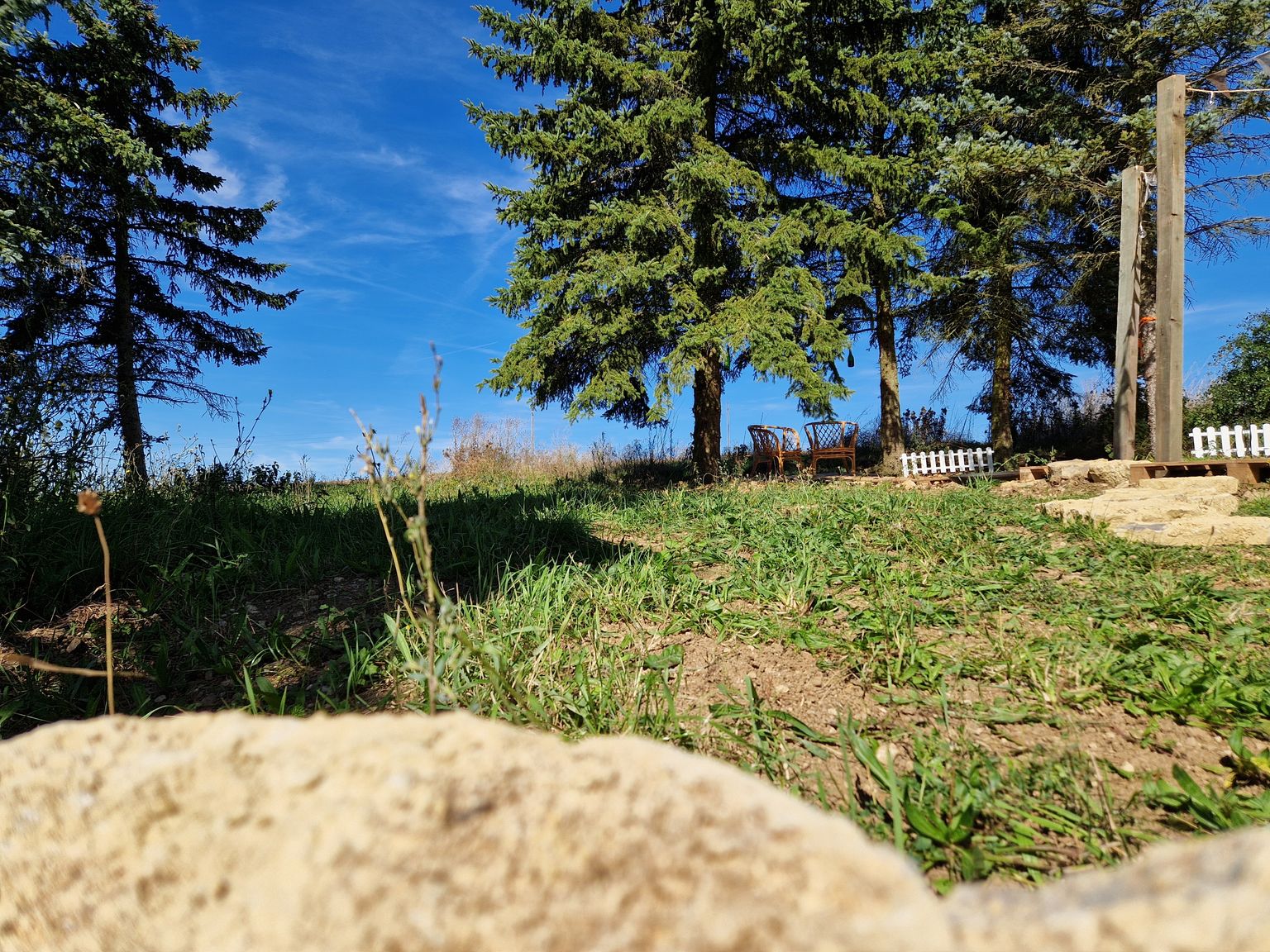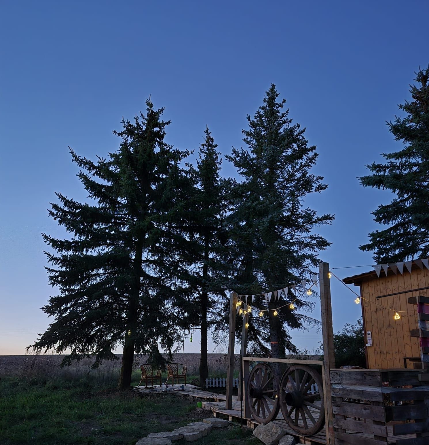 Wunderschöner, kleiner, gemütlicher Bauwagen am Rande unserer Campingwiese mit Blick auf Felder, Wald und das Taubertal.