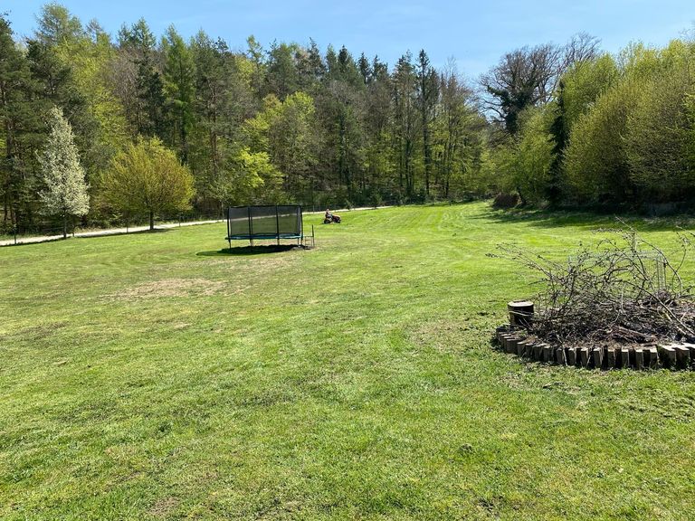 • oder auf der großzügigen Wiese (leicht abschüssig)
