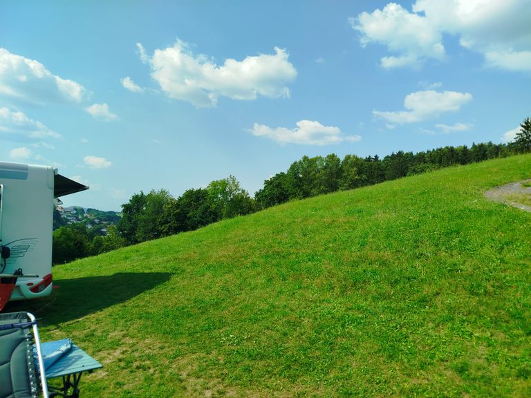 Ein Stellplatz befindet sich unter der ehemaligen Stallung auf einem mit Rasengitterpflaster Steinen belegten Weg, der bequem über die Straße erreicht wird. Ein weiterer liegt oberhalb der Hofstelle mit Aussicht über die Wiese und den Ortskern. Der dritte Stellplatz liegt direkt an der Alpaka Weide.